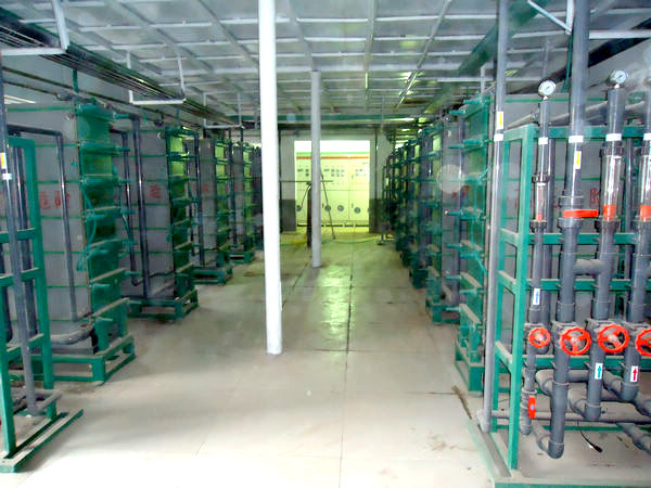 用電滲析法將苦咸水或海水淡化,脫鹽成本與含鹽量有密切關(guān)系。有人認(rèn)為電滲析法淡化成本與處理水的含鹽量的0.6 次冪成正比。電滲析脫鹽的最佳濃度范圍是幾百至幾mg.L-1 ,苦咸水大多在此范圍,而海水含鹽量則是苦咸水的10~20倍。含鹽量為幾百mg.L-1的原水制取純水,一般采用離子交換法。若鹽水濃度太高,則適合用電滲析法做離子交換的前處理。先脫除原水中的大部分鹽分,減輕離子交換的負(fù)擔(dān),延長其使用周期,在制取高純水時(shí)把兩者結(jié)合起來使用,往往會產(chǎn)生很好的技術(shù)效果和經(jīng)濟(jì)效果。電滲析技術(shù)還廣泛應(yīng)用于濃縮海水制鹽。日本國內(nèi)的制鹽基本上都是用電滲析法,此方法與傳統(tǒng)鹽田法制鹽相比有許多優(yōu)點(diǎn),如占地面積小,投資少,不受外界環(huán)境影響,易于實(shí)現(xiàn)自動化。我國在西南地區(qū)采用電滲析法將鹽泉鹵水制鹽,使NaCl 的含量穩(wěn)定提高到120 g.L-1 ,與原來采用的單純熬鹽法相比,產(chǎn)量增加而成本降低。